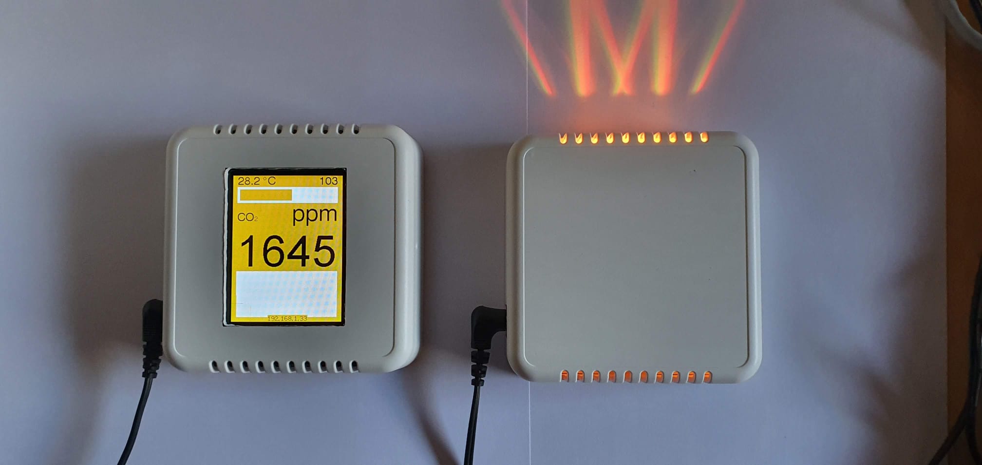 El CierzO2 Compact con idéntica tecnología NDIR, se ilumina con una luz verde, naranja y rojo dependiendo de la concentración medida de CO2 al no incorporar el display. Ambos modelos, disponen de conectividad Wifi para visualización precisa de los valores.